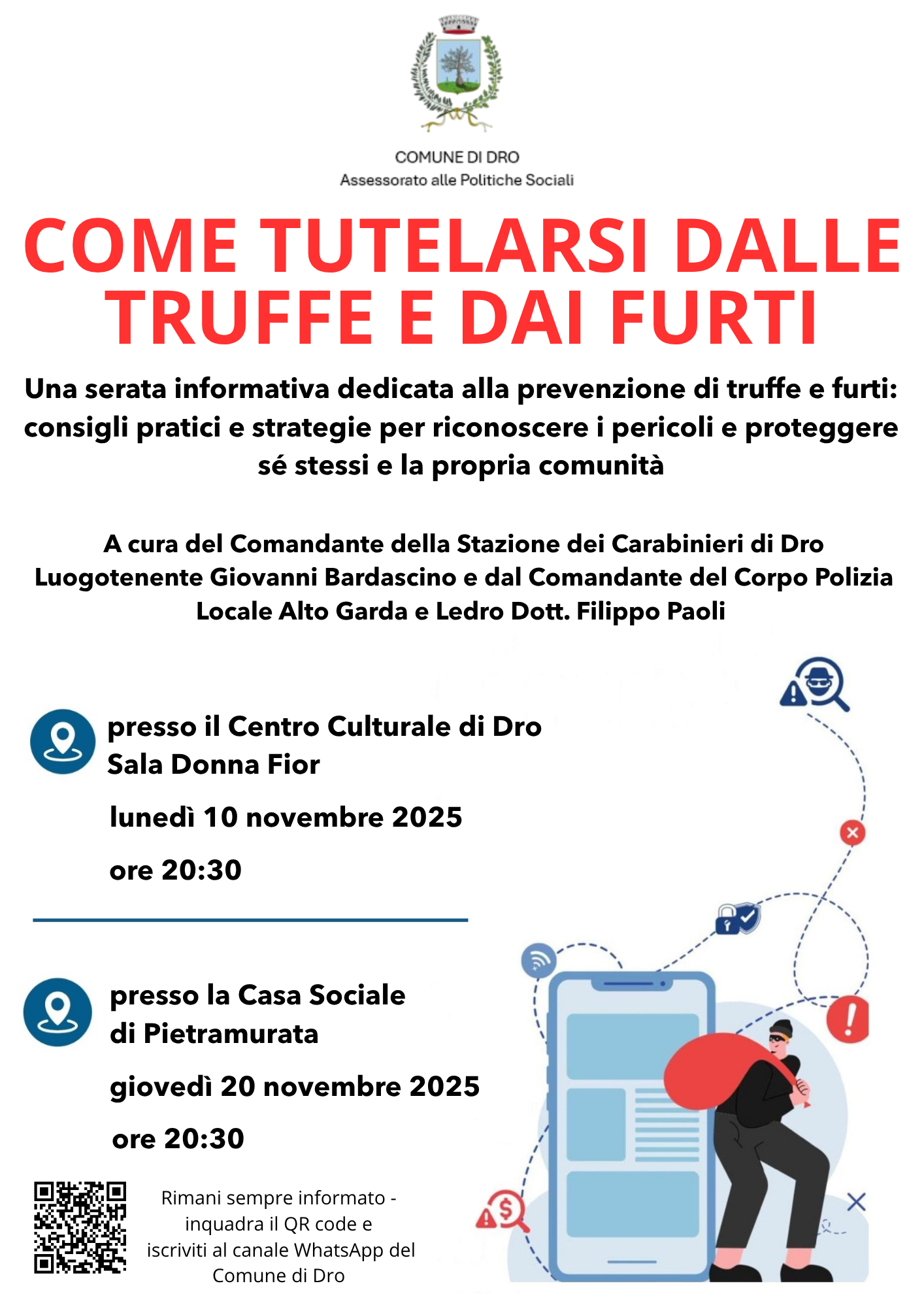 Una serata informativa dedicata alla prevenzione di truffe e furti: consigli pratici e strategie per riconoscere i pericoli e proteggere sé stessi e la propria comunità.