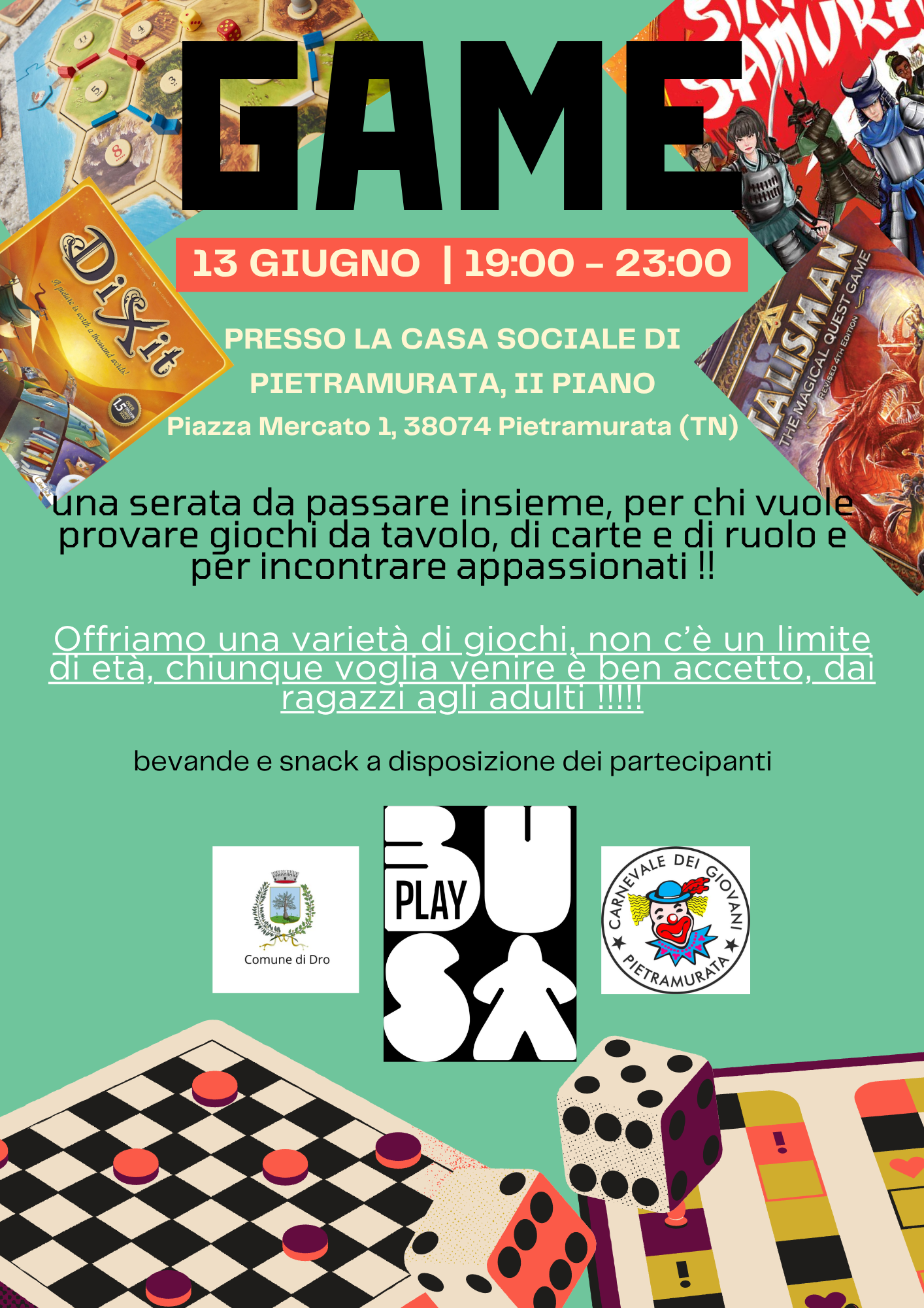 Un'occasione per incontrare appassionati e giocatori di ogni età; la serata è aperta a ragazzi/e e adulti.