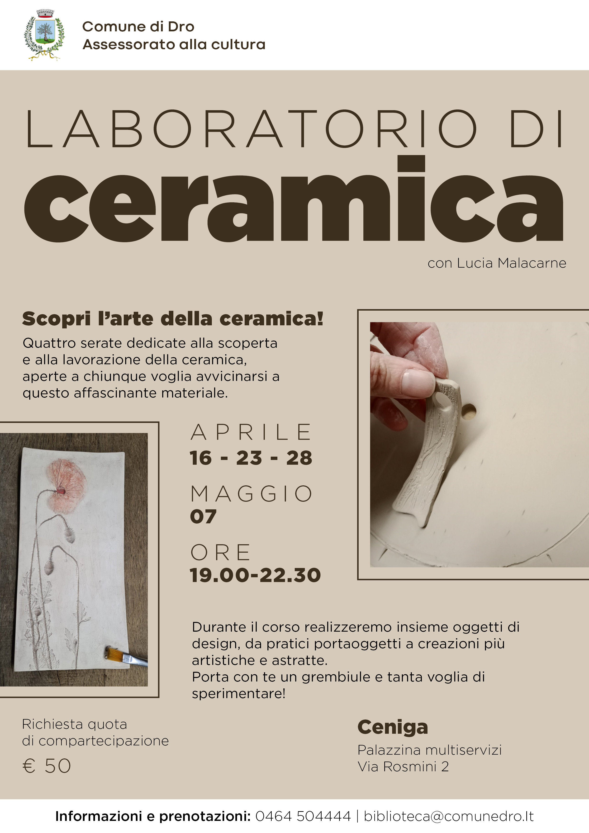 Quattro serate dedicate alla scoperta e alla lavorazione della ceramica per avvicinarsi a questo affascinante materiale.