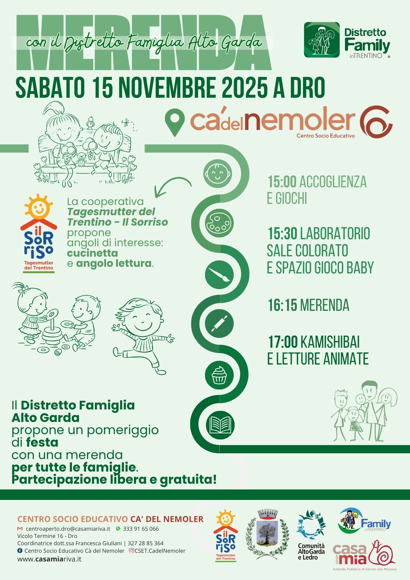 Il Distretto Famiglia Alto Garda propone un pomeriggio di festa per tutte le famiglie, organizzato dall'APSP Casa Mia di Riva del Garda e in collaborazione con la cooperativa Tagesmutter del Trentino - Il Sorriso